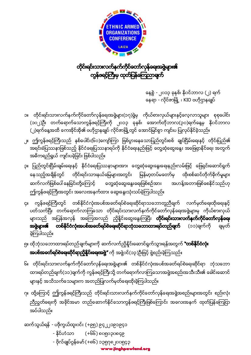 ETHNIC ARMED ORGANIZATIONS CONFERENCE Zuphpawng Galaw Ngut