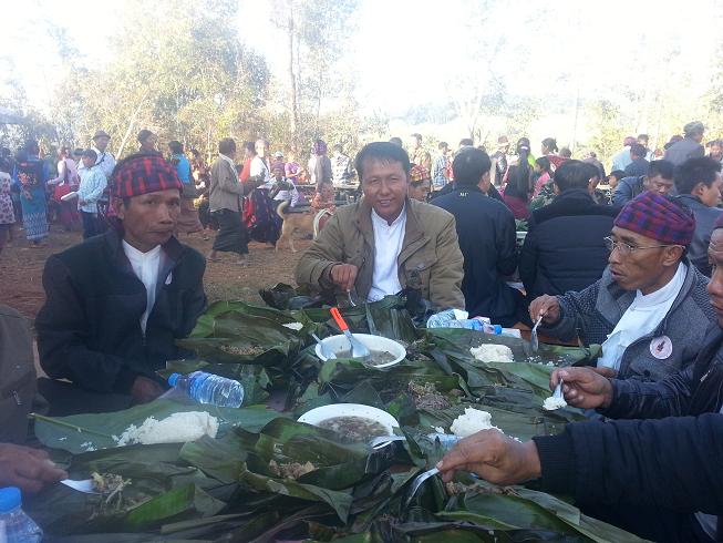 克钦独立军三旅一营战区孟巴坝。11月27日孟巴坝基督教会,天主教会两派宗教团体在孟巴坝举行感恩节吃景颇新谷米节,在两会共同建立的祈祷山进行祈祷活动。祝愿缅甸的和平得以实现及民族的繁荣。希望克钦邦的和平早日实现,村民们早日回到自己的家园正常的生活。