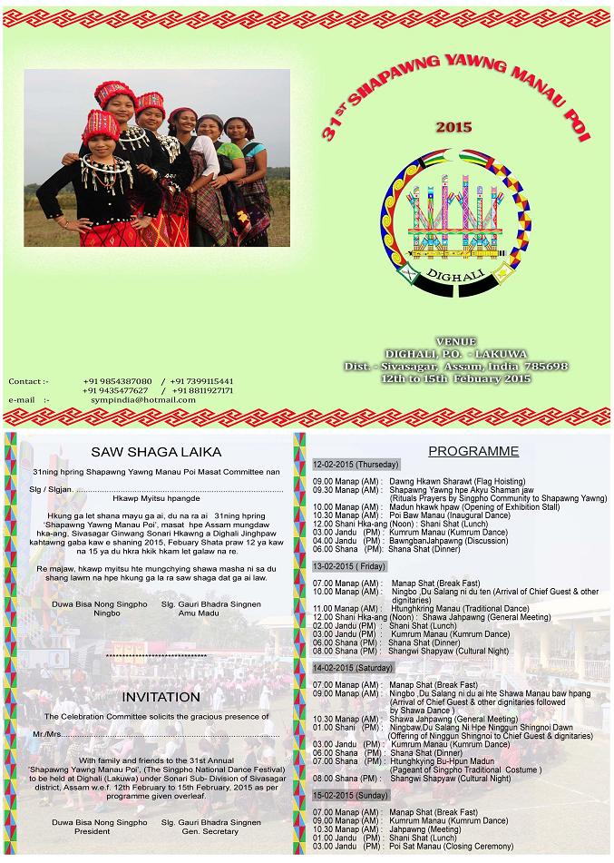 印度东部藏南地区阿萨姆邦景颇族同胞目瑙纵歌庆典节日,邀请中国景颇同胞及各族兄弟同胞共同欢度景颇民族传统的景颇大地目瑙纵歌节日活动,加强同中国景颇同胞及各民族之间的文化交流与了解,促进地区的文化经济的发展进步。